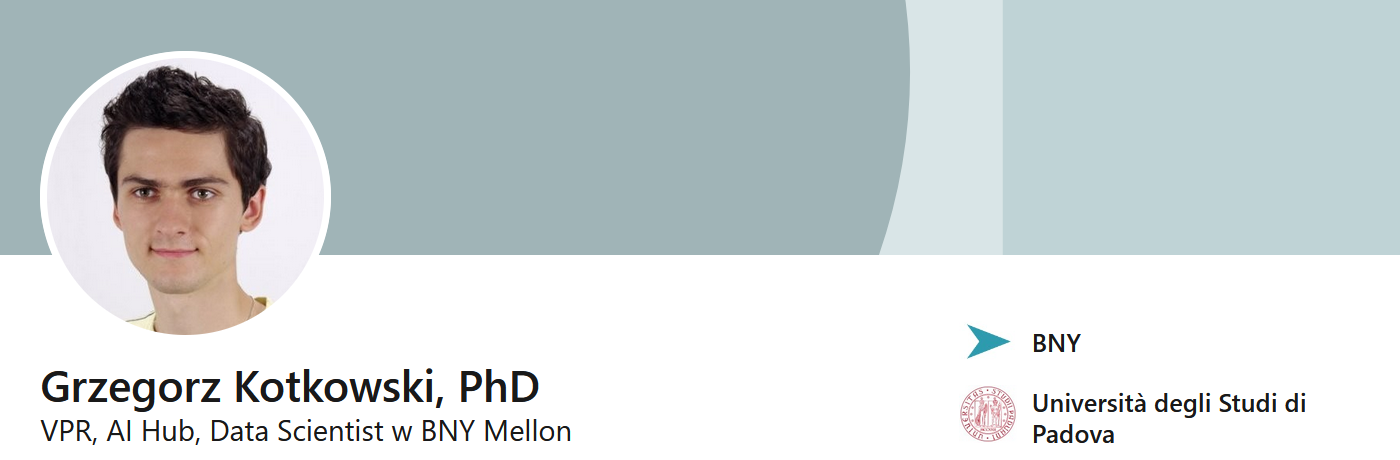 - Dr. Grzegorz Kotkowski (Data Scientist, AI Hub, BNY Mellon)